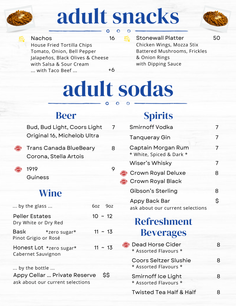 Stonewall's adult place for snacks and "sodas"